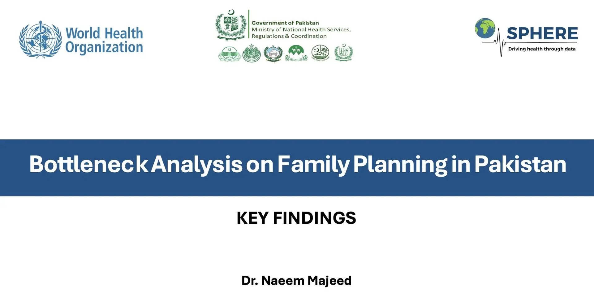 Earlier this week, SPHERE Pakistan team facilitated the National Stakeholder Validation Workshop on Bottle Neck Analysis (BNA) for FP Situation in Pakistan, organized by the World Health Organization (WHO) and Ministry of National Health Services, Regulations and Coordination. Participants included representatives from the Government and private sector / NGOs & INGOs, from all provinces & areas of Pakistan.